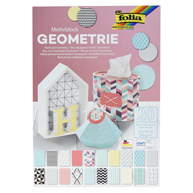 Set de hârtie de design Geometry, 24x34 cm, 20 foi, 270 g/m², 20 motive