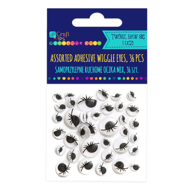 Decorează-ţi păpuşile, jucăriile şi alte creaţii handmade, adăugând ochi mişcători. Setul include ochi autoadezivi într-o singură mărime, potriviți pentru a da viață unui personaj realizat manual.