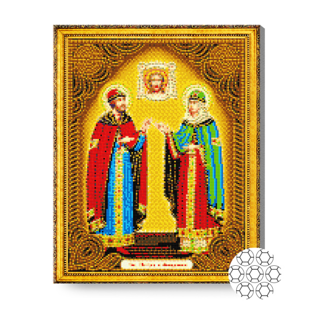 Icoană Petru și Fevronia, 40x50 cm, mozaic cu diamante