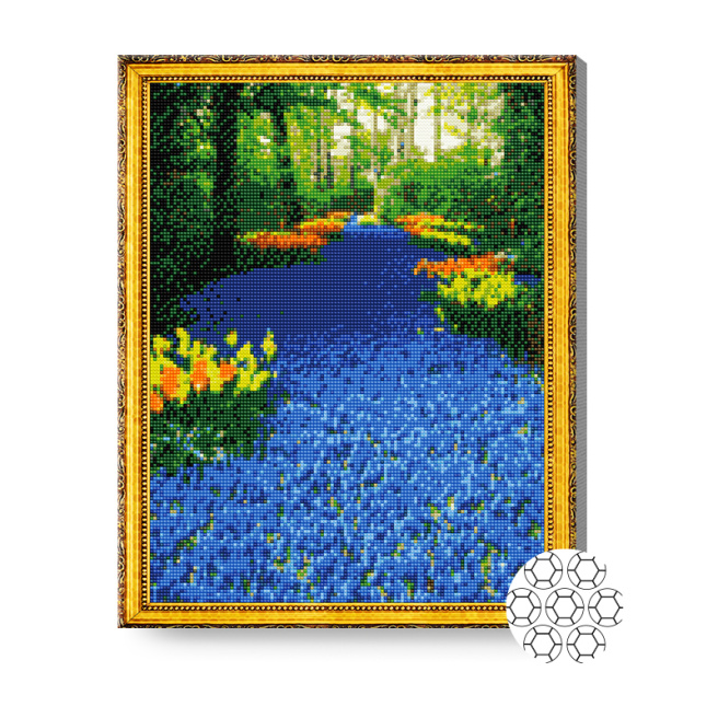 Drumul din flori albaștri, 40x50 cm, mozaic cu diamante
