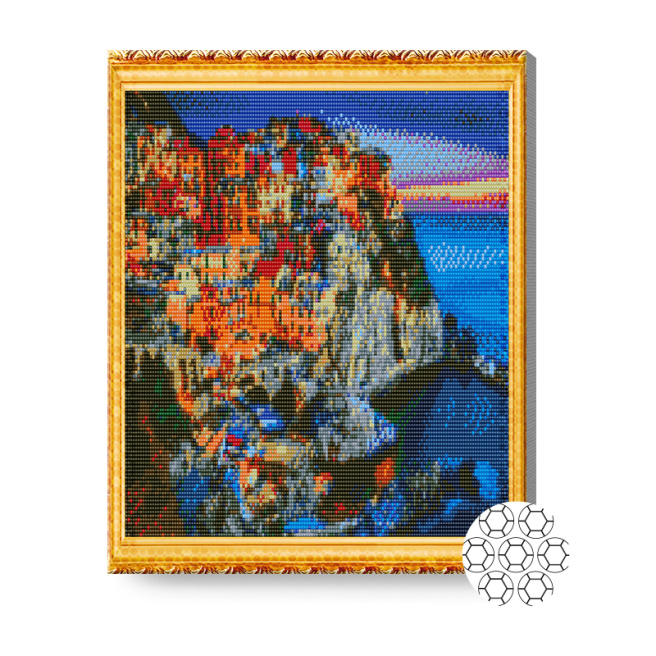 Orășel viu-colorat, 40x50 cm, mozaic cu diamante