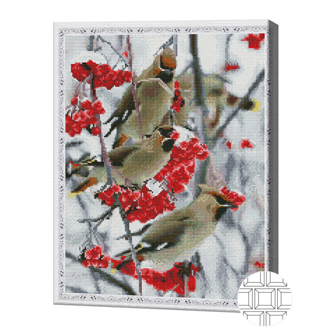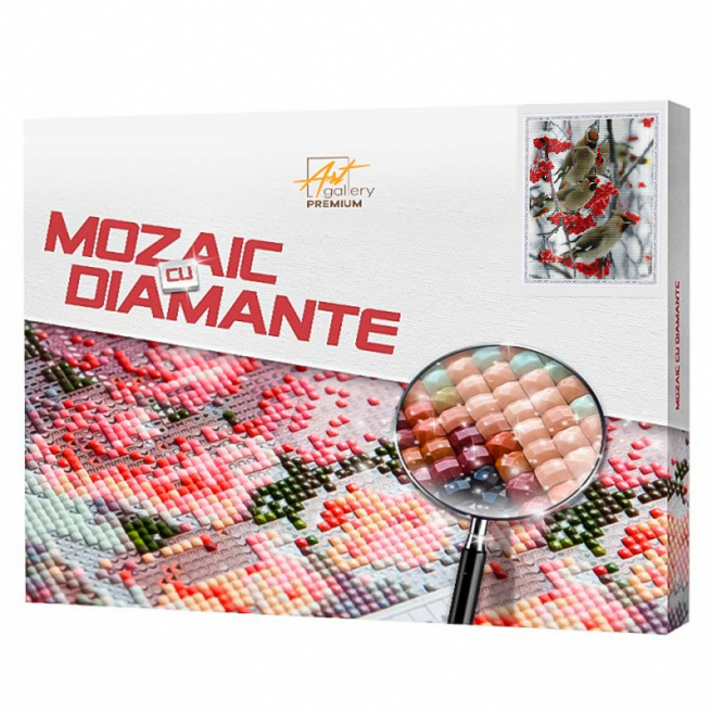 Păsări pe scoruș, 40x50 cm, mozaic cu diamante pătrate