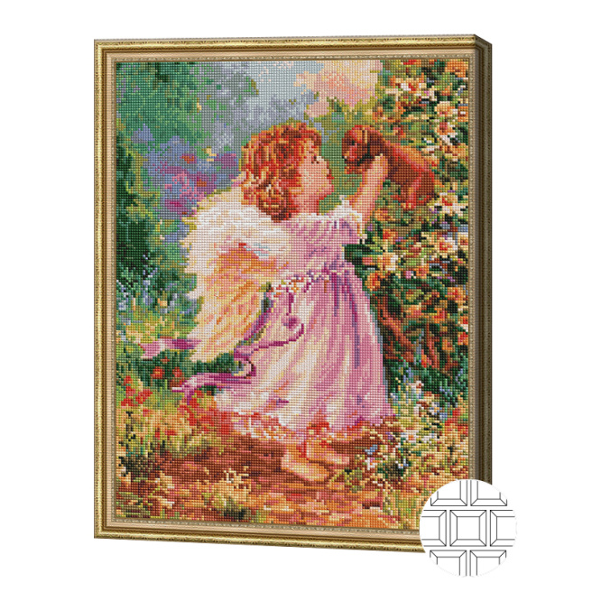 Îngeraș cu cățeluș, 40x50 cm, mozaic cu diamante pătrate