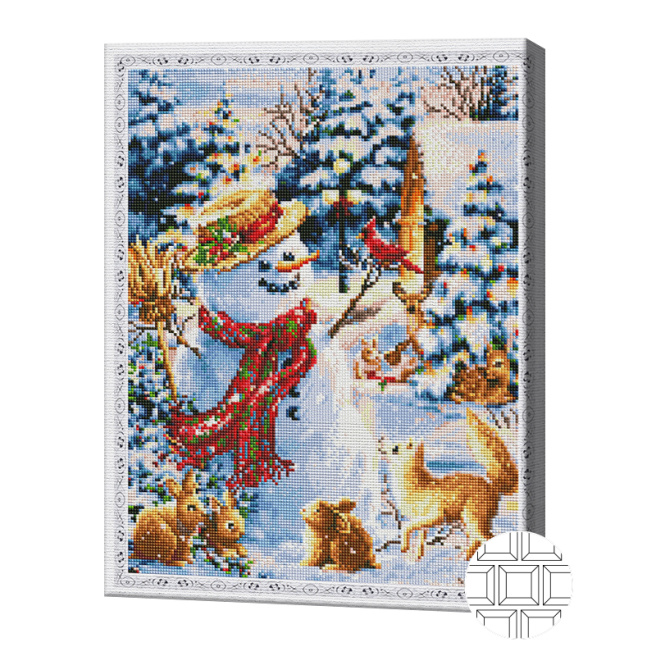 Omul de zăpadă cu prieteni, 40x50 cm, mozaic cu diamante pătrate