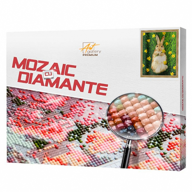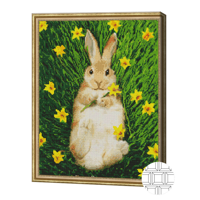 Iepuraș printre narciși, 40x50 cm, mozaic cu diamante pătrate