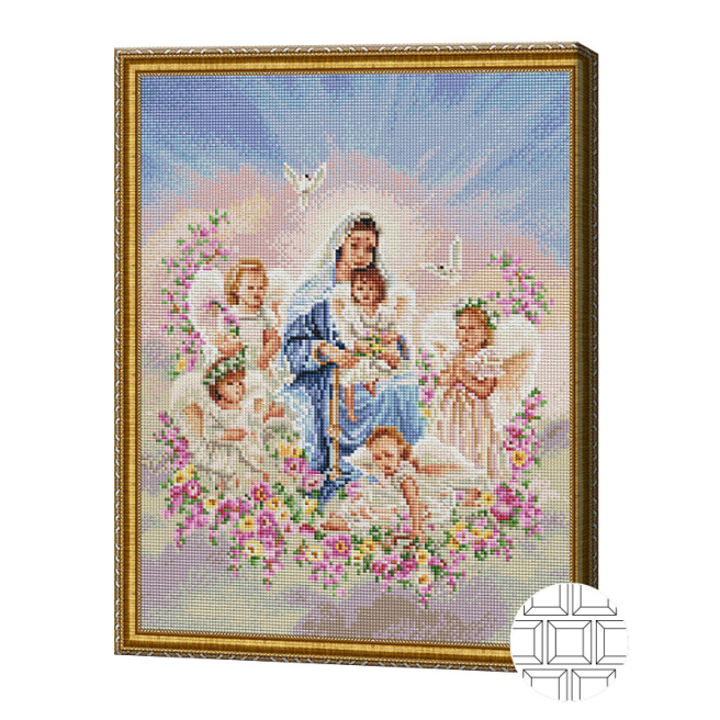 Fecioara cu îngeri, 40x50 cm, mozaic cu diamante pătrate