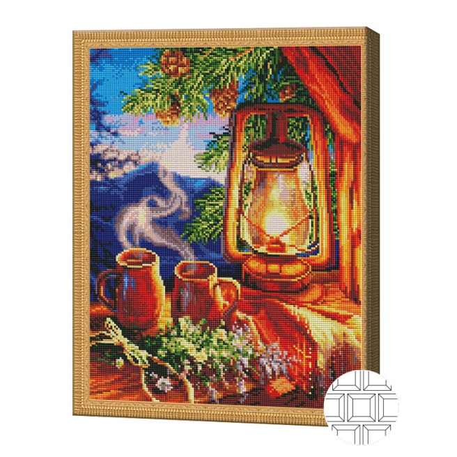 Ceai și ramuri de brad, 40x50 cm, mozaic cu diamante pătrate