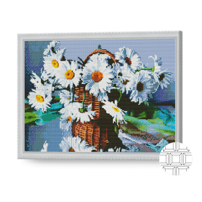 Romănițe în coș, 40x50 cm, mozaic cu diamante pătrate