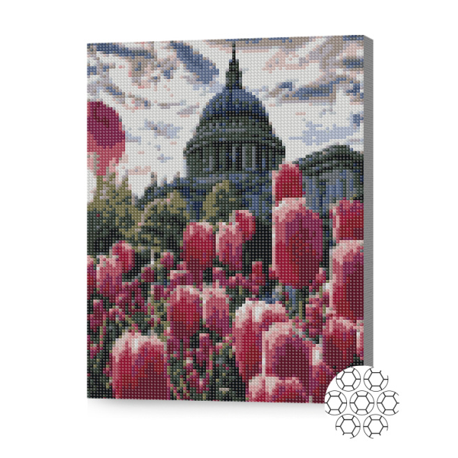 Lalele în oraș, 30x40 cm, mozaic cu diamante