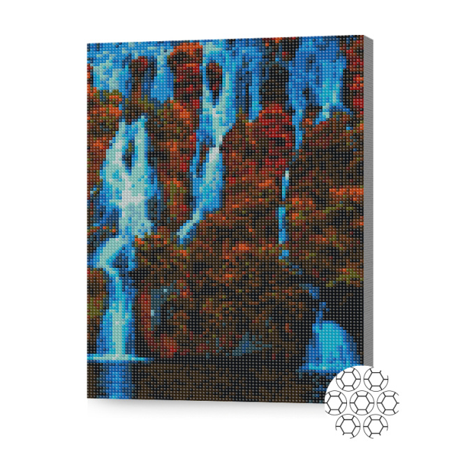 Cascadă albastră, 30x40 cm, mozaic cu diamante