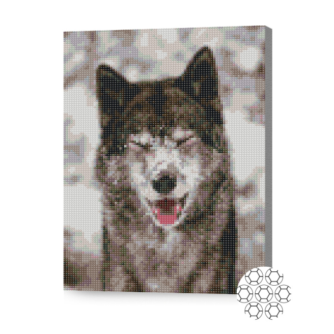 Lupul în zăpadă, 30x40 cm, mozaic cu diamante