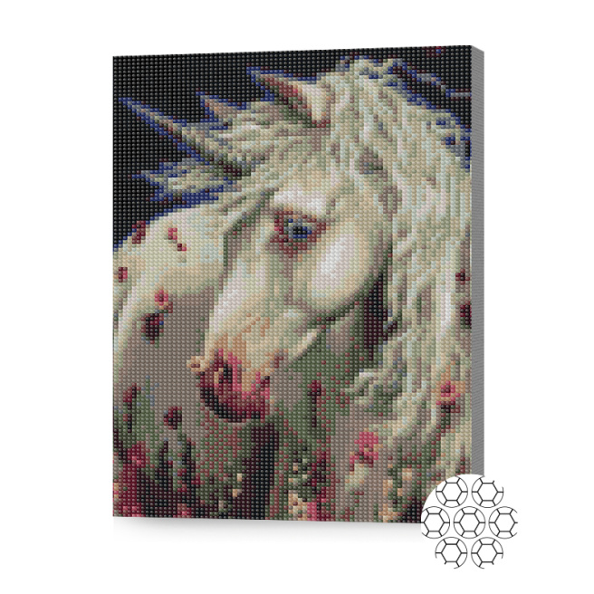 Unicorn printre flori, 30x40 cm, mozaic cu diamante