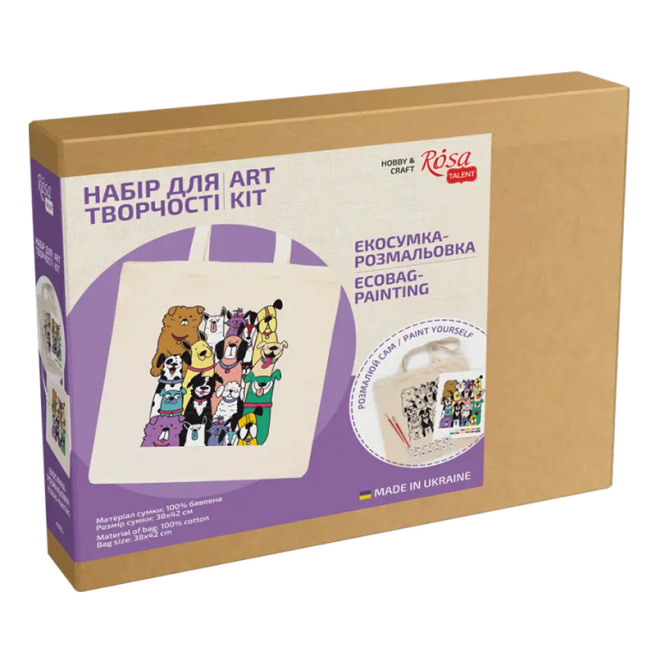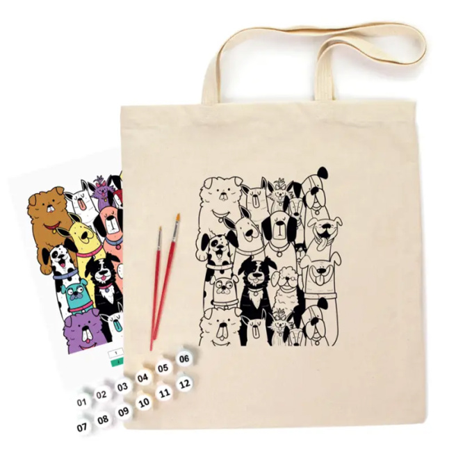 Set de pictat, Eco shopper, "Cățeluși", bumbac 220 g. 38*24cm, Rosa Talent