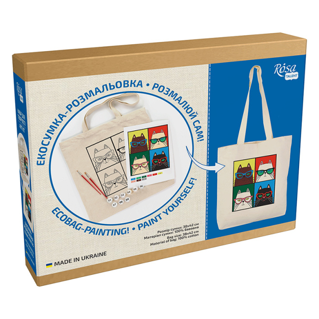 Geanta sport ROSA Talent Cotton - confecționată din țesătură de bumbac 100%. Materialul delicat de calitate și fixarea fiabilă a mânerelor vă permite să rezistați la o sarcină de până la 15 kg. Pictarea unei genți ecologice ROSA Talent este un proces extrem de fascinant și în același timp ușor, deoarece contururile desenului sunt deja trasate pe bază. Geanta pictată manual va deveni un accesoriu strălucitor, elegant și practic, care vă va completa look-ul zilnic!