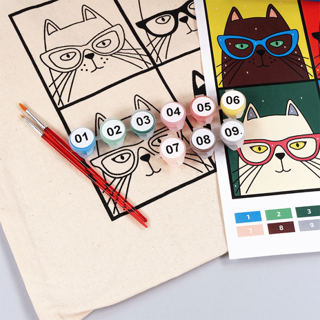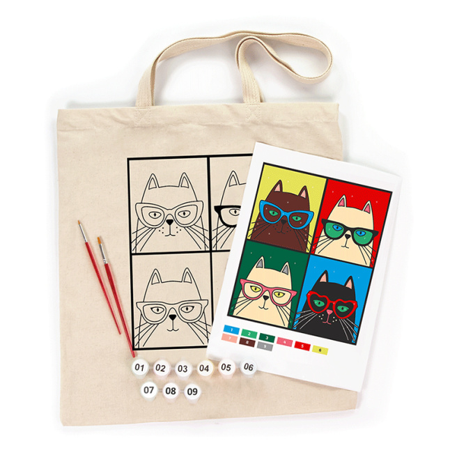 Set de pictat, Eco shopper, „Pisici cu ochelari“, bumbac 220 g. 38x24cm