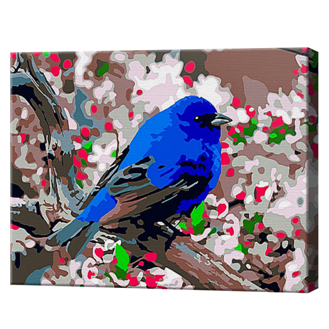 Păsărică albastră pe scoruș 20x30 cm, pictură pe numere