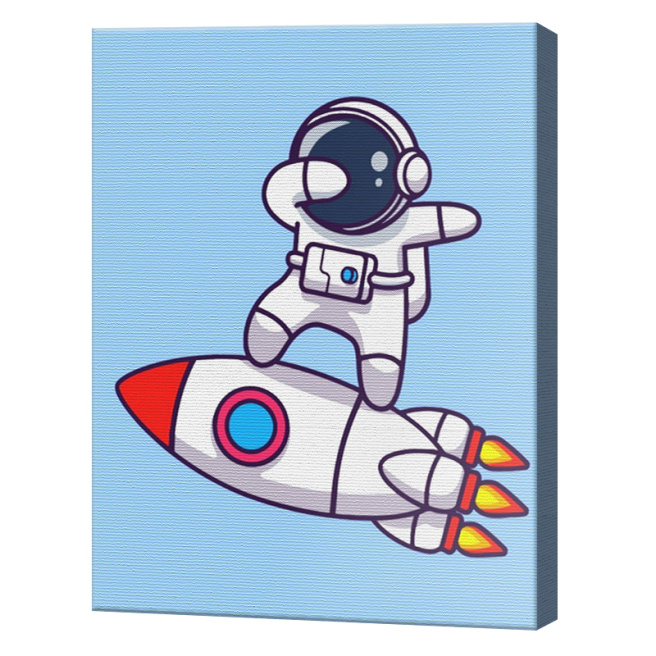 Cosmonaut pe rachetă 20x30 cm, pictură pe numere