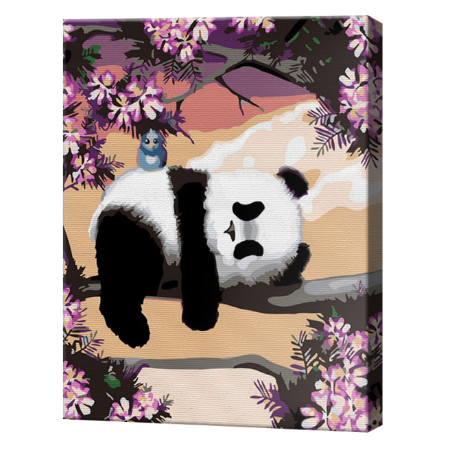 Pandă pe copac înflorit, 30x40 cm, pictură pe numere