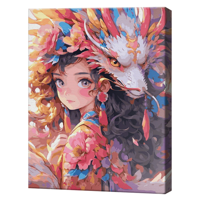 Fată și dragon chinezesc, 40x50 cm, pictură pe numere