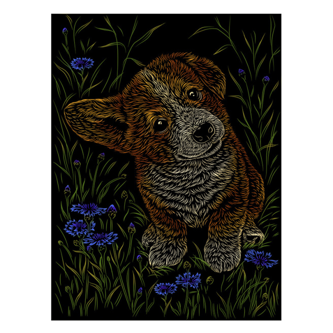 • Zgârierea este un tip special de desen prin zgârierea stratului superior de vopsea cu un instrument special - o daltă. În procesul de lucru, pas cu pas, este vizibilă o imagine în culori strălucitoare, care arată neobișnuit și elegant pe un fundal negru. Seria scratching va fi interesant atât pentru copii, cât și pentru adulți. Scratchingul dezvoltă perseverența, abilitățile motorii fine, acuratețea și abilitățile creative și este, de asemenea, capabil să îmbunătățească fundalul emoțional. Set complet: o bază cu conturul pus, un graver special, instrucțiunea.