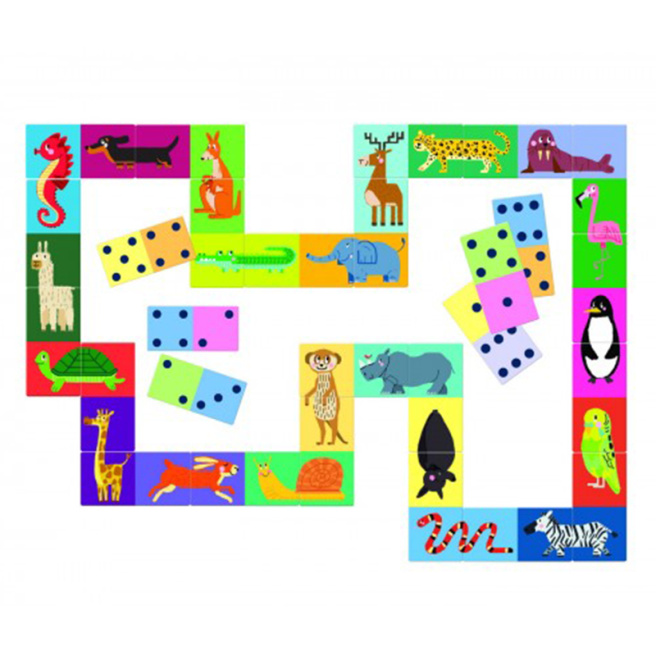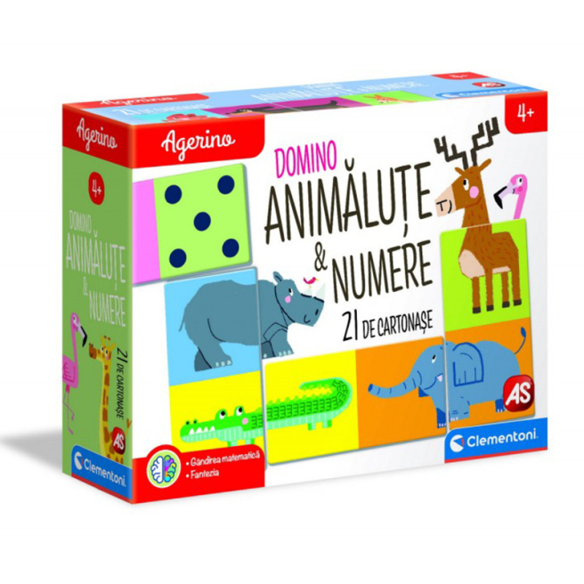 Un domino special cu 28 de plăci, care ajută la învățarea animalelor și a numerelor prin imagini vii. Copilul compune figurile animalelor și își dezvoltă gândirea matematică, prin asocierea numerelor cu cantități.