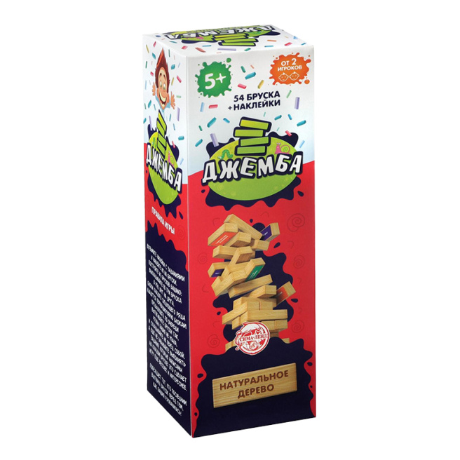 Joc de societate Turnul înclinat „Djemba” cu forfeits, 54 de bare / 1362714. Celebrul „Jenga” într-o versiune nouă! 100% lemn natural!