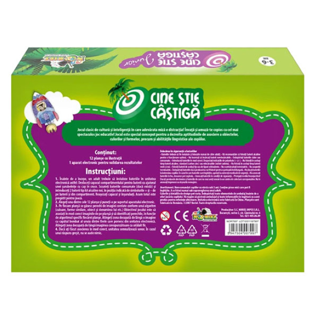 Cine știe cîștigă! Junior Compact - Joc Electronic Cine știe cîstigă JUNIOR este un joc educativ, care are ca scop verificarea și îmbogățirea cunoștiințelor generale ale copiilor.