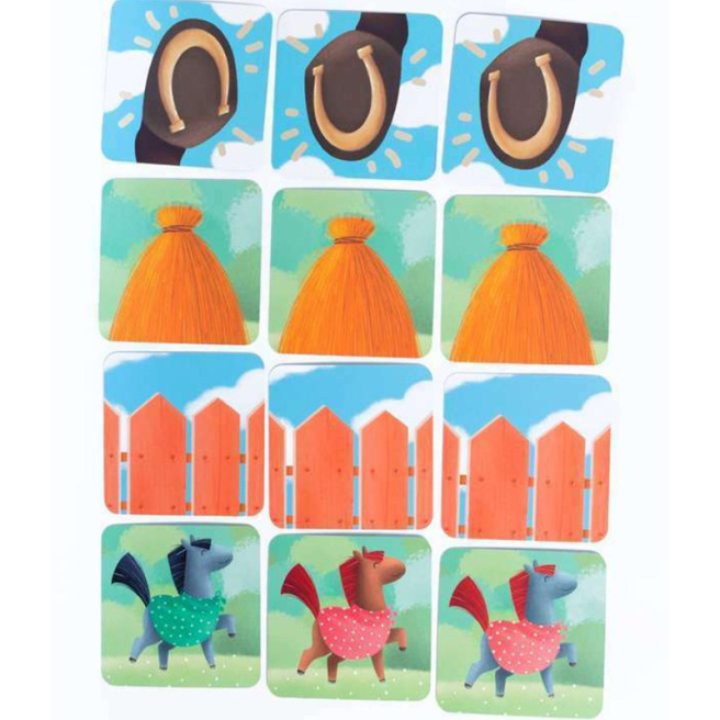 Poneii veseli și colorați au fugit, iar împreună trebuie aduși înapoi acasă. Acest joc este cooperativ, ceea ce înseamnă că îi învață pe copii să lucreze în echipă, să cedeze în unele privințe și undeva să acționeze decisiv de dragul victoriei comune.