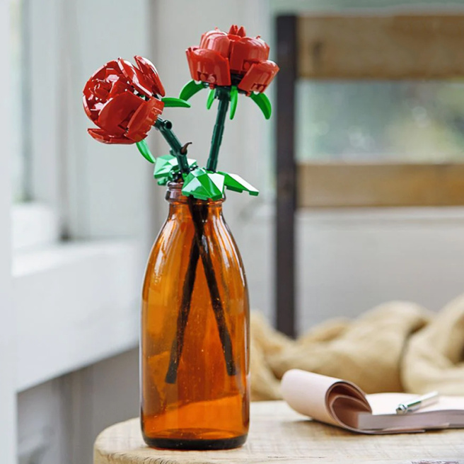 • Constructor LEGO Flowers Trandafiri, spre deosebire de trandafirii vii, reprezentanții florei de la compania LEGO nu au spini și nu se vor ofili niciodată. În combinație cu seturile „Lalele” și „Buchet” pot crea o compoziție încântătoare care va încânta cu frumusețea ei pe tot parcursul anului pentru mulți ani la rând. Pentru orice sarbatoare sau fara motiv, ofera-le celor dragi o buna dispozitie cu flori realizate din piese LEGO.