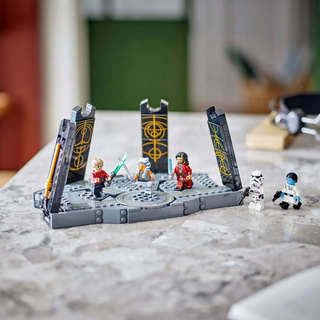 Recreează lupta epică din finalul sezonului 1 din Star Wars: Ahsoka și creează noi aventuri cu setul de joacă pentru copii Ahsoka Tano Duel pe Perideia (75385). Această jucărie de colecție include 5 minifigurine LEGO Star Wars - Ahsoka Tano, Marele Amiral Tron, Morgan Elsbeth, Ezra Bridger și Night Troopers - cu accesorii iconice pentru o joacă plină de imaginație, fiind un cadou grozav de ziua ta pentru băieți, fete și orice fan cu vârsta de 8 ani și peste. Plasați personajele pe platformă, care are 3 platane încorporate pentru bătălii rotative și o funcție pentru a recrea saltul lui Ezra.