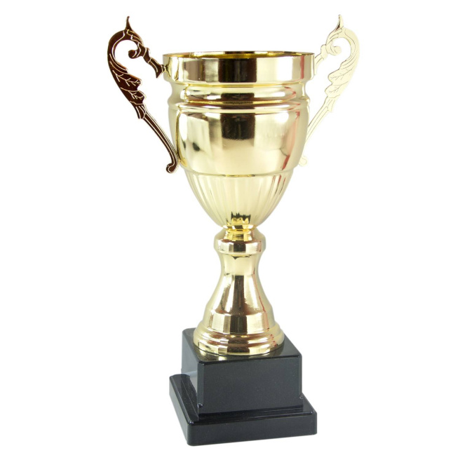 Cupă de 38 cm este un trofeu impresionant și elegant. Realizat din materiale de înaltă calitate, această cupă este un simbol al realizării și victoriei. Sărbătorește-ți succesele cu acest trofeu maiestuos de 38 cm.