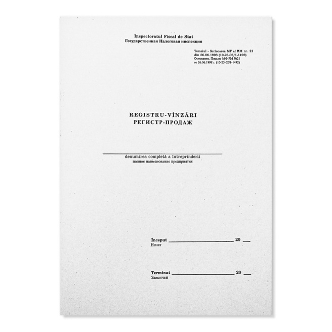 Carte cancelara ;Registru-Vinzari;, cu 50 file, format A4, produsa din hirtie alba, offset, de calitate inalta. ;