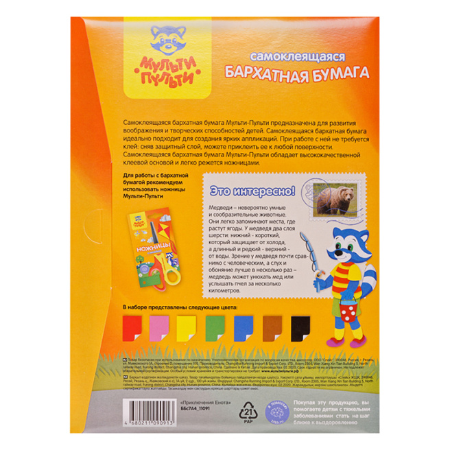 Hârtia autoadezivă A4 cu turmă aplicată (grămadă) imită suprafața unei țesături de catifea și diferă prin saturație, adâncime de ton, densitate. Într-un dosar cu încuietoare pentru depozitare ușoară și cuier Euro 7 coli de 7 culori diferite. Hârtia de catifea este un material decorativ excelent. Este utilizat pe scară largă pentru lucrări decorative și decorative, pentru realizarea de suveniruri, produse floristice și aplicații. Pentru copii peste 3 ani.