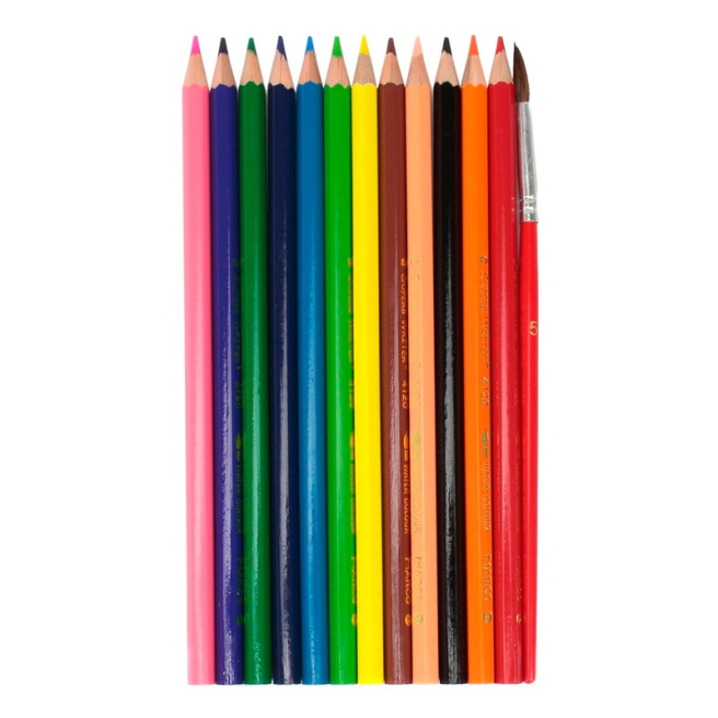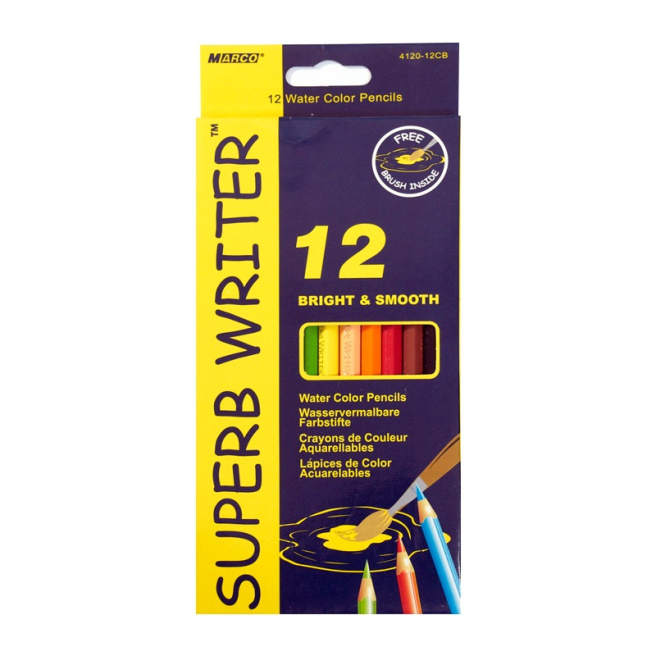 Set creioane colorate MARCO SuperbWriter, acuarela, 12 culori + pensulă