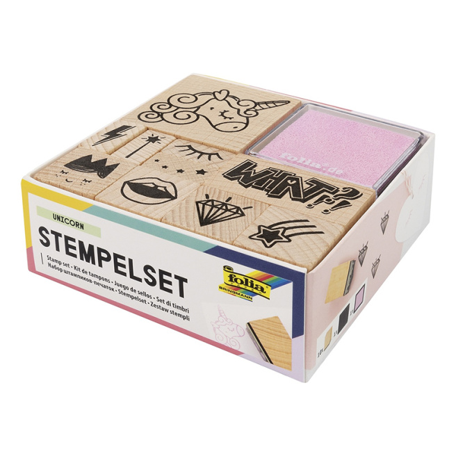 Set de ștampile "Handmade", lemn, ștampile + pernute cu cerneală 12 elemente (10+2)