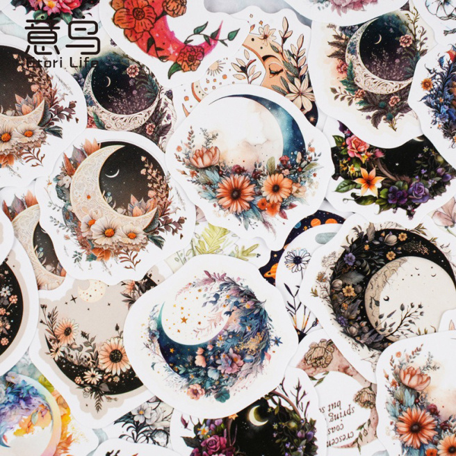Autocolante "Halloween, nopți misterioase", flori și luna, 46 bucăți