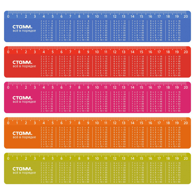 Rigla "STAMM" seria "Tabelul de înmulțire" este destinată lucrărilor de desen și măsurare. Lungimea scării este de 20 cm, lățimea riglei este de 35 mm. Produsul are margini rotunjite sigure și scală milimetrică contrastantă clară. Rigla este completată cu un material de referință - tabla înmulțirii. Acesta este fabricat din polistiren de înaltă calitate și are o suprafață netedă lucioasă. Culoarea produsului este sortiment perlat.