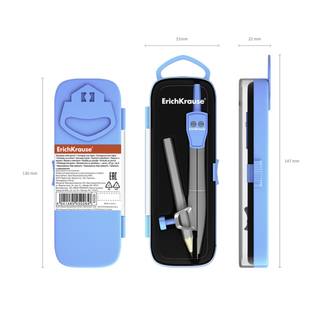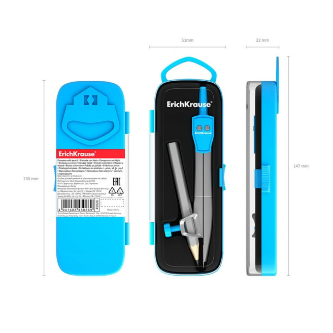Compas Erich Krause School, în cutie din plastic