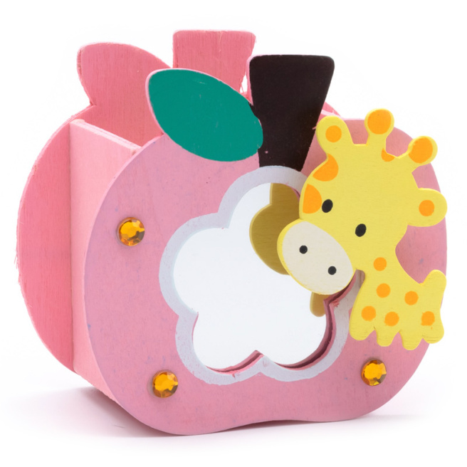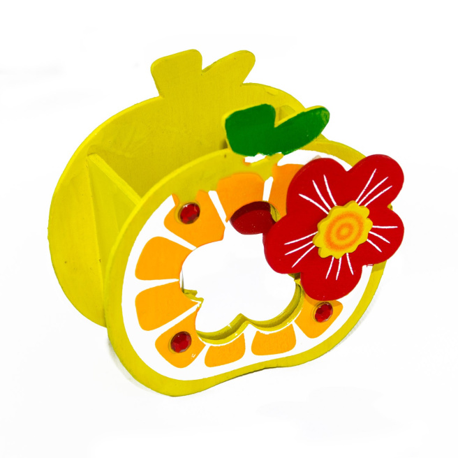 Suportul pentru stilouri din lemn este conceput pentru a depozita rechizite școlare și vă permite să vă organizați spațiul de lucru. Suportul prevăzut cu un compartiment, pe partea frotală are un pin decorat pentru atașarea foilor.