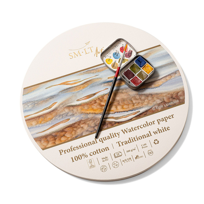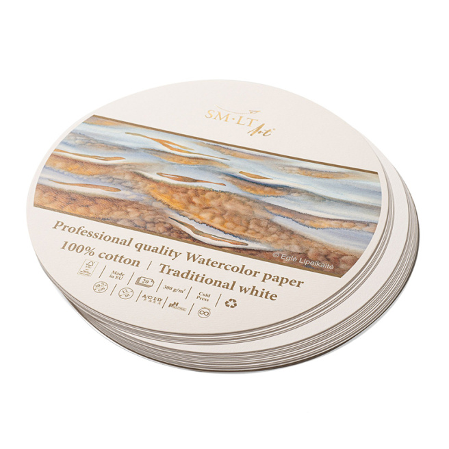 Бумага круглая для акварели с традиционной белой акварельной бумагой из 100% хлопка. Текстура поверхности холодного прессования обладает отличной способностью подтягивать цвет. Эта бумага ценится профессионалами и любителями и предлагает хорошее качество по доступной цене.