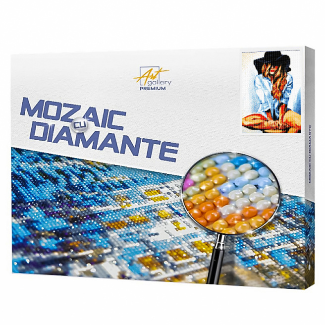 • Алмазная мозаика или алмазная вышивка - способ выкладывания картины на холсте с клейкой основой с помощью небольших акриловых страз. Этот вид творчества не требует много сил и времени для того, чтобы воссоздать ослепительную картину.