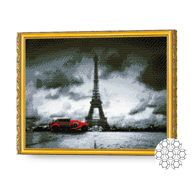 Серый Париж и ретромобиль, 40x50 см, алмазная мозаика