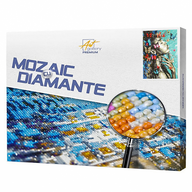 • Алмазная мозаика или алмазная вышивка - способ выкладывания картины на холсте с клейкой основой с помощью небольших акриловых страз. Этот вид творчества не требует много сил и времени для того, чтобы воссоздать ослепительную картину.