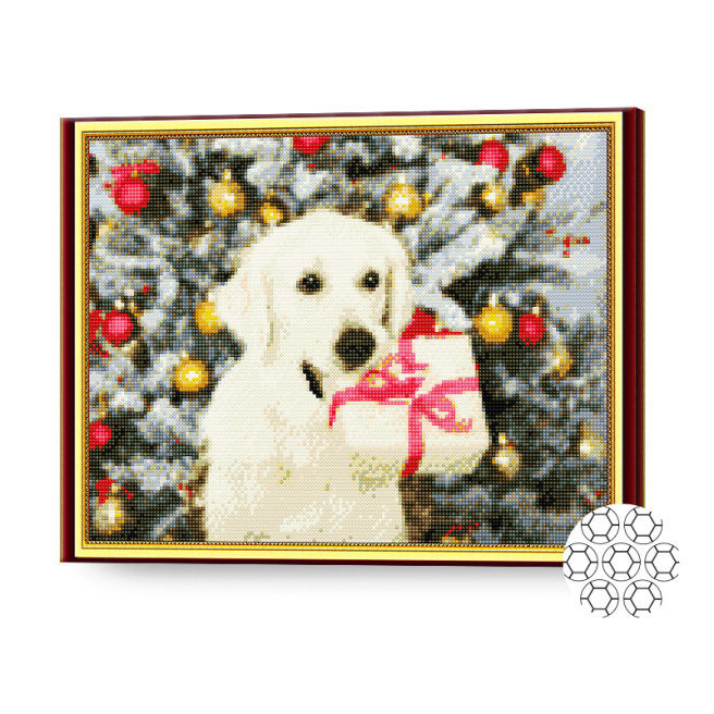 Лабрадор с подарком, 40x50 см, алмазная мозаика