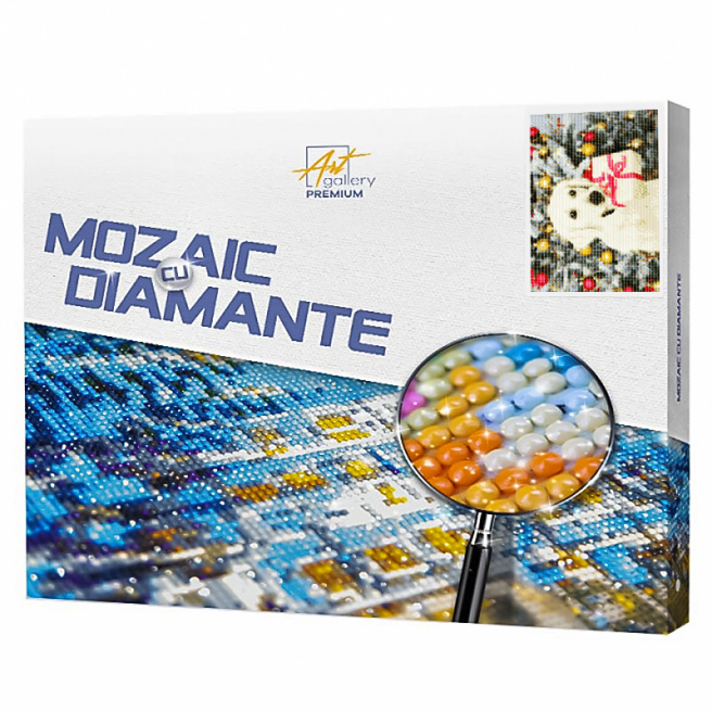 • Алмазная мозаика или алмазная вышивка - способ выкладывания картины на холсте с клейкой основой с помощью небольших акриловых страз. Этот вид творчества не требует много сил и времени для того, чтобы воссоздать ослепительную картину.