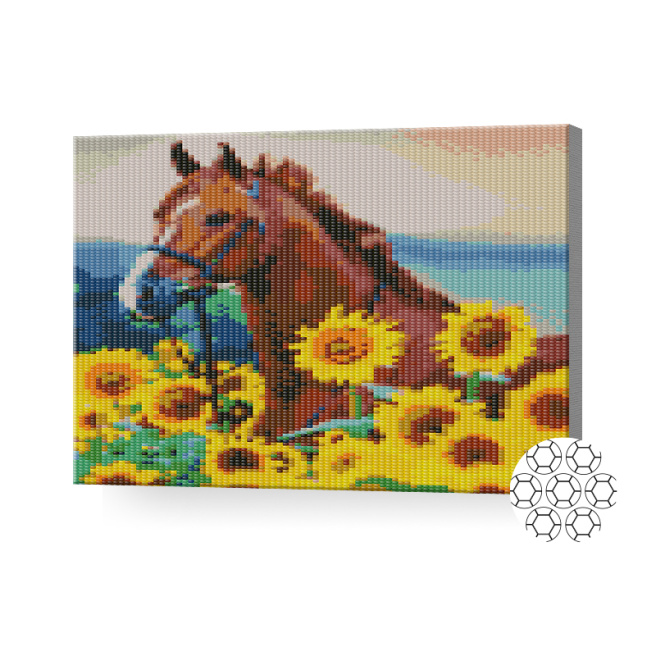 Конь среди подсолнухов, 30x40 см, алмазная мозаика