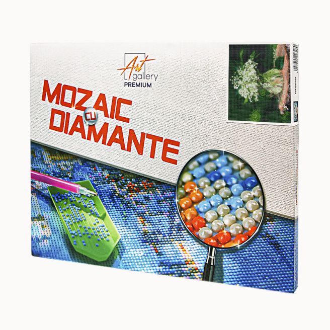 • Алмазная мозаика или алмазная вышивка - способ выкладывания картины на холсте с клейкой основой с помощью небольших акриловых страз. Этот вид творчества не требует много сил и времени для того, чтобы воссоздать ослепительную картину.