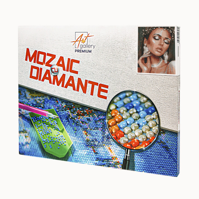 • Алмазная мозаика или алмазная вышивка - способ выкладывания картины на холсте с клейкой основой с помощью небольших акриловых страз. Этот вид творчества не требует много сил и времени для того, чтобы воссоздать ослепительную картину.