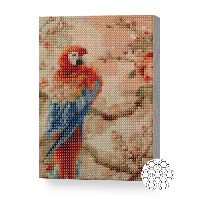Попугай на цветущей ветке, 20x30 см, алмазная мозаика