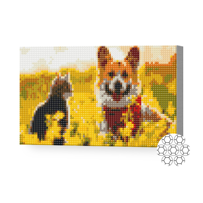 Пес и кот на поляне, 20x30 см, алмазная мозаика